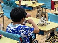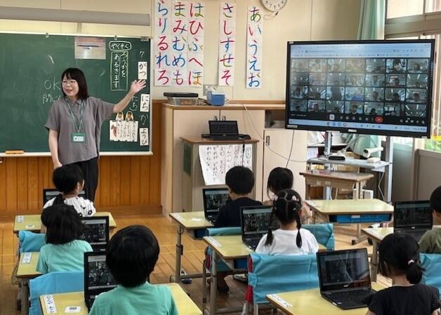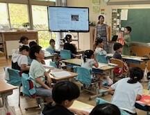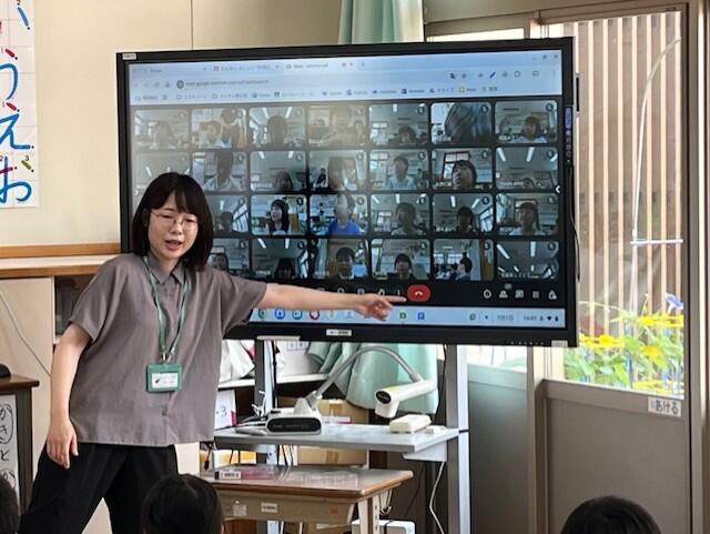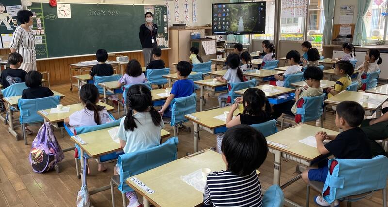 熊本の地下水の源が阿蘇山にあることを学ぶ動画を、子どもたちは「ここ知ってる!」「行ったことある!」と身近に感じてながら、食い入るように見ていました。