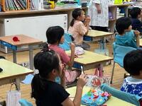 1年生には、子育て支援課の方から「なぜフッ化物洗口を行うのか?」についてお話をしていただきました。