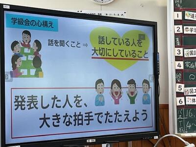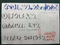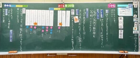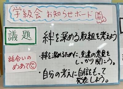 以前から計画委員さんたちが、話し合う準備をしてきて、教室の後ろには、「学級会 お知らせボード」が置いてありました。