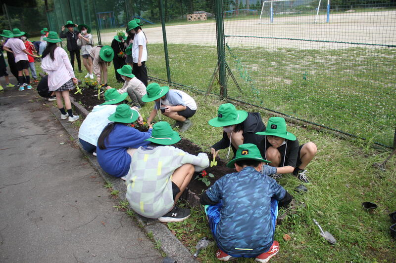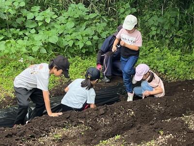4年生は6月4日に、2年生は6月6日に芋の苗植えをしました。