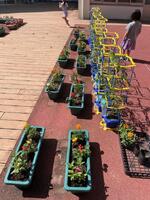 4つの畝に植えられています。残りの2畝は、何を植える予定なのかな?