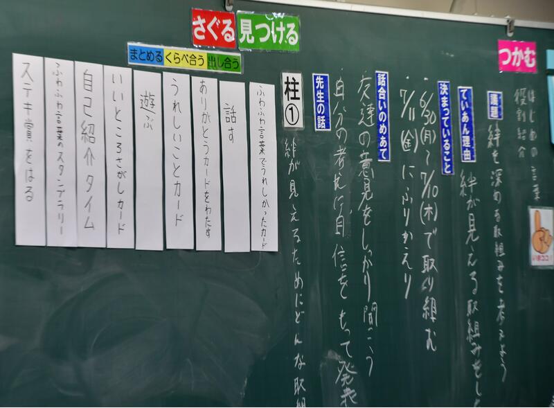 授業の内容は、学級活動 議題「絆を深める取組を考えよう」について話し合いです。