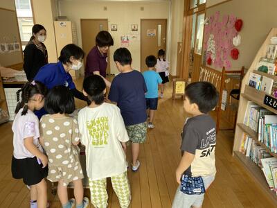 開会式の終わりには、みんなが仲良くなるように「じゃんけん貨物列車」を全員でしました。