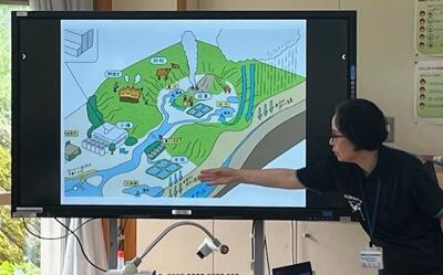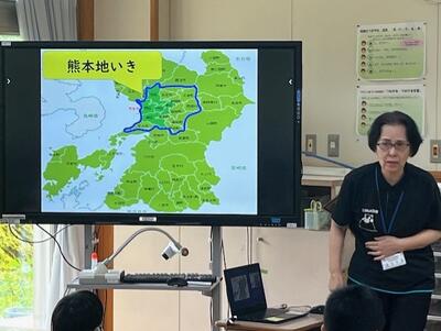 今日は、熊本県環境立県推進課から髙田みはるさんにお越しいただき、出前講座「水の学校」をしていただきました。