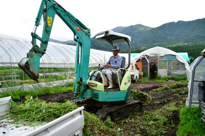 笠野さんには、ユンボまで使って作業をお手伝いいただきました。