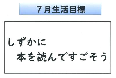7月の生活目標の発表では、図書委員会から昼休みの読み聞かせのお知らせがありました。