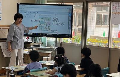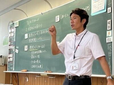 この授業は、南阿蘇村教育委員会の 坂田菊美 学校教育指導員にも参観していただきました。
