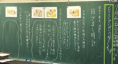 3年生 国語 「本で知ったことをクイズにしよう」4年生 道徳 「目ざまし時計」