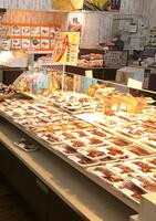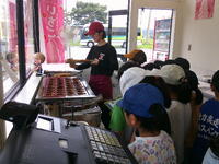 立野駅のニコニコ饅頭やさんでは、立野駅のことやお饅頭のことをやさしく教えていただきました。