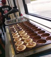 目の前でたこ焼きや回転饅頭を焼いているのを見ることができました。