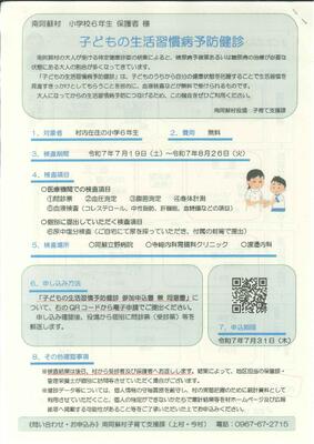 夏休み期間中に無料で受けることのできる健診ですので、健康チェックの機会として受けてみてはいかがでしょうか?