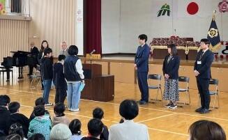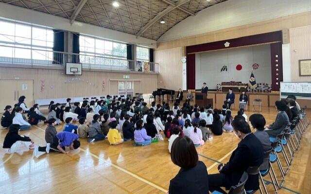 嶋﨑校長先生からの歓迎の言葉や南阿蘇村 村長 太田 吉浩 様のお祝いの言葉も、まっすぐ前を向いて、お話を聞いていました。
