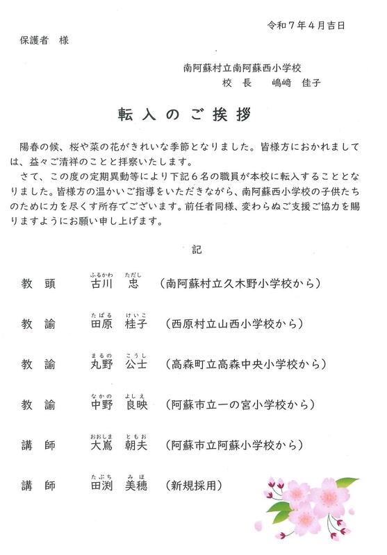 新1年生を迎えて、南阿蘇西小学校は、全校生徒142名になりました。