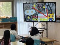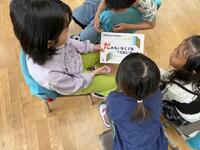 子どもたちが喜びそうな選りすぐりの絵本を、直接、絵本を見せたり、電子黒板におおきく映し出したりと、子どもたちが興味を持って聞けるよう工夫されていました。