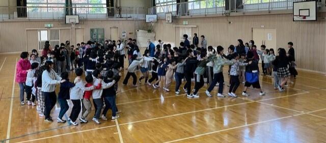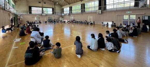 「ウォークラリー」を楽しんだ後、体育館に集合して、縦割り班のお別れ会をしました。