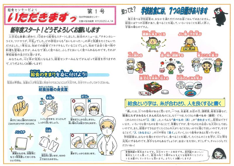 これまで紹介していませんでしたが、白水学校給食センターの坂本栄養教諭が書かれている便りです。これから紹介していきたいと思います。