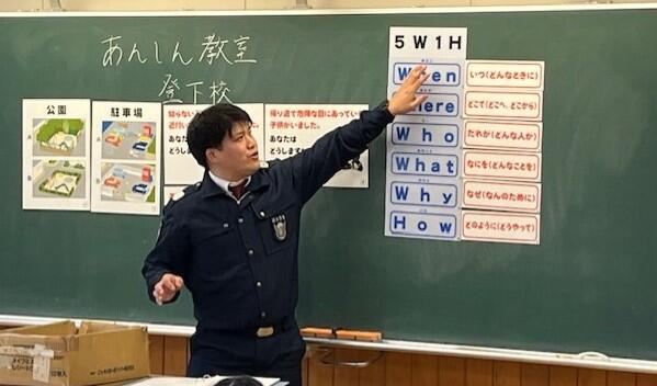 犯罪や交通事故など、通学路に潜む危険について考えました。