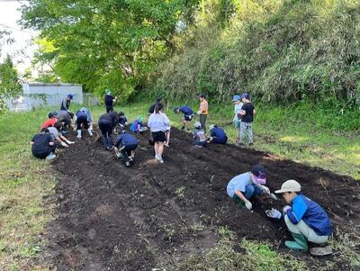 東先生が事前に耕運機で耕していましたので、雑草取りと畝づくりをみんなで協力してしました。
