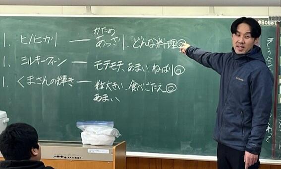 JA青壮年部の4名の方に来ていただき、「ごはんの食べくらべ」をしました。