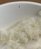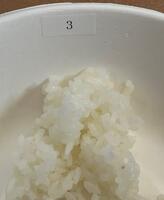 1つのお皿に、番号がつけられた3種類のお米を食べくらべしました。