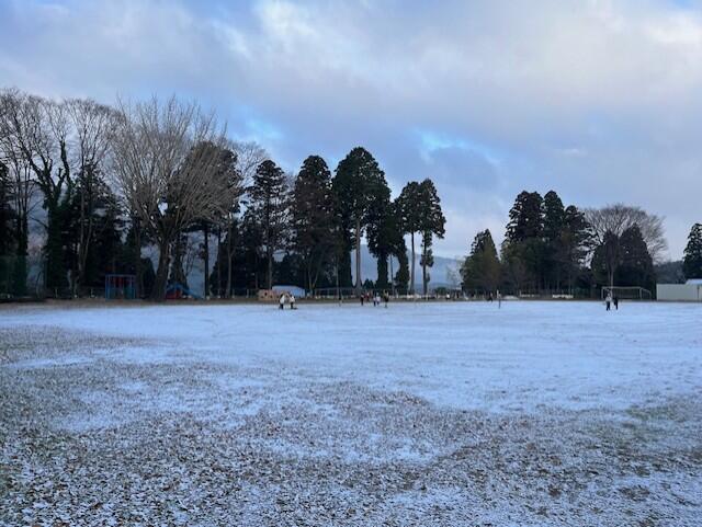 昨夜から積雪注意報が出されていましたが、朝方6時頃から雪が降り始め、子どもたちが登校する頃には、校庭にはうっすらと雪が積もっていました。