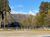 運動場には4つの班が、小雪混じりの強風に肩を丸めながら集まりました。