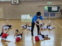 子どもたちは、すぐさまマネをして、くぐって跳んで、くぐって跳んでを繰り返していました。大村先生の運動は、どれもわかりやすく、子どもたちが楽しんでできるように工夫されています。