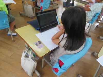 1時間目の授業です。3年生が作文を頑張っていました。説明文「すがたをかえる大豆」のまとめの学習です。本やインターネットを使って調べたことを作文にしていました。どんな食品がどのようにすがたを変えるのかをアイディアマップ等も活用しながら作文を書いていました。