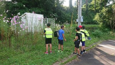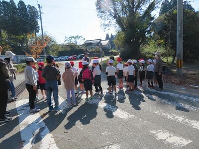 学校の周りを中学年(約1.5km)、低学年(約1.0km)、