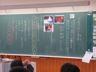 2時間目、6年生の教室からショパン「英雄ポロネーズ」の音色が聞こえてきました。道徳の授業がでした。ピアニスト辻井伸行さんのことを勉強していました。目標を立て、希望や夢に向かって、諦めずに努力しようとする心について学習していました。自分の好きなピアノを諦めずに努力を続ける辻井さんの生き方に感動したことと思います。