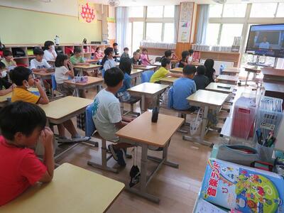 業間は「西っ子集会」がリモートで行われ、今月の目標を振り返りました。