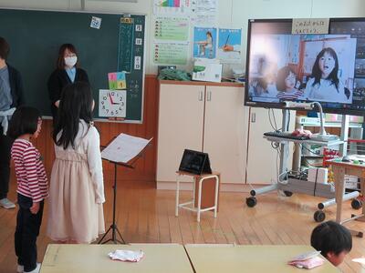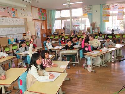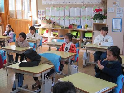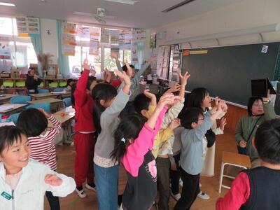 今日から12月、学年閉鎖が終わった1年生が学校に帰ってきました。まだ、休みの子はいますが、1年生がいると学校がさらに明るくなります。2時間目の外国語活動の授業です。いつもよりちょっぴりテンション低めですが、英語活動を楽しんでいました。