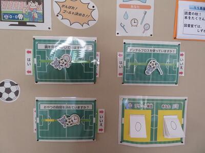 10月になり掲示物も変わっています。保健室前児童昇降口の掲示物です。