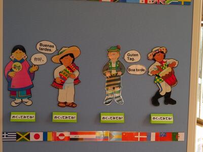 実際に学習したことを活かして書かれた作文も掲示してあります。