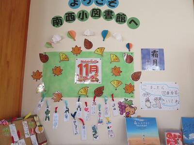 今日で11月も終わりです。秋も終わり冬の寒さを感じる1日でした。図書室には、読書の秋に取り組んだ本の紹介カードが掲示してありました。