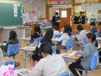今日の5時間目、2年生と5年生では人権教育の授業研究会が行われました。どちらも子どもたちが書いた作文から学びました。家族のこと、仕事やくらしのことについて書かれた作文を読み合って、よさを見つけたり自分とのつながりを考えたりしました。