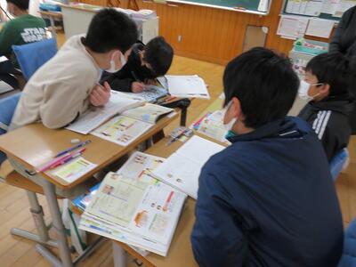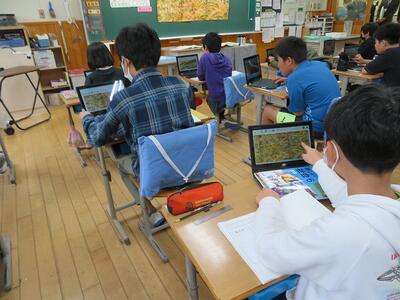 先週木曜日まで学級閉鎖だった6年生、学級閉鎖開けの先週金曜日は、みんなそろっていませんでしたが、今日は、みんな元気なようです。1時間目6年生社会、班で学習を進めていました。