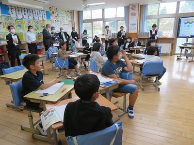 本日、南阿蘇村の研究発表会が本校と中学校で行われました。南西小にも、阿蘇郡市から学校関係者を始め、多くの方々が参会されました。今日は、1年生生活、5年生算数、6年生社会の授業を見ていただきました。授業の様子です。