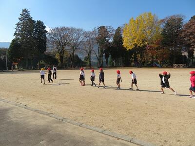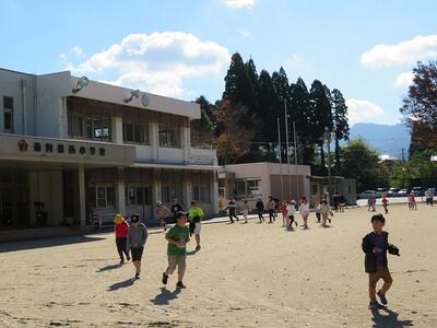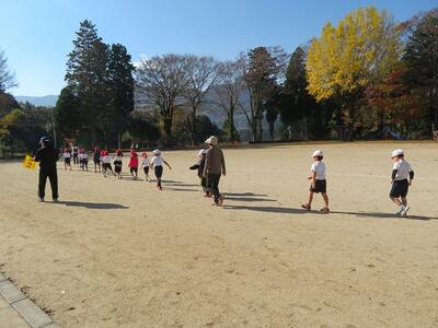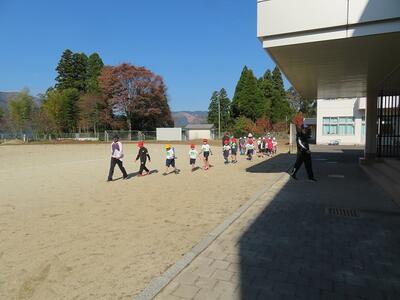3時間目、1・2年生の合同体育が行われました。12月7日に予定されている持久走大会のコース確認をしました。持久走大会が初めての1年生、コースを知ることは大事なことです。2年生も1年前走った記憶を思い出しながらコースを確認したことと思います。