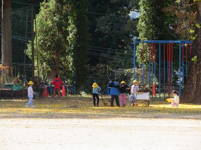 昼休みは、今日も落ち葉を集める子どもたちがいました。