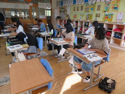 5時間目、5年生は書写でした。「成長」という課題を書いていました。