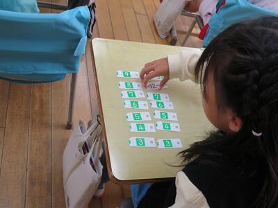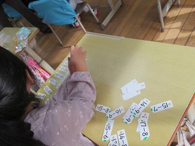 今日の授業からです。1年算数、カードを使って引き算の習熟でした。計算もずいぶん速くなりました。