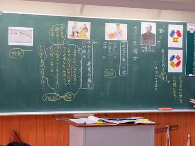 5年生道徳、働くことについて考えを深めていました。子どもたちもお金を得ることだけが働くことの意義ではないと気づいていきました。