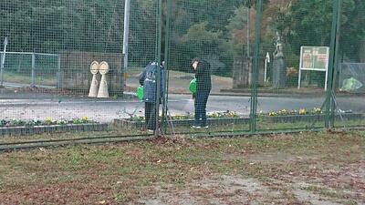 11/21 昼休みの落ち葉掃き、3年生社会科見学