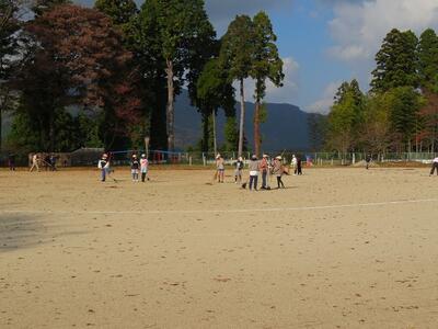 昼休み、外で遊ぶには絶好の日和でした。運動場で多くの子どもたちが遊んでいました。