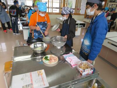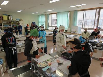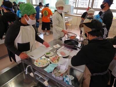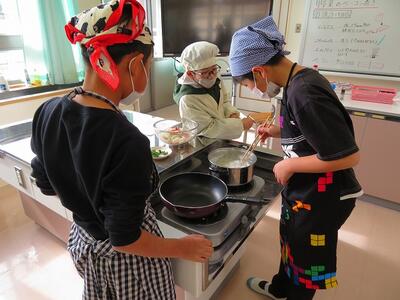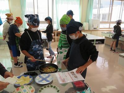 4時間目、6年生は家庭科の調理実習でした。高学年家庭科では、調理実習は、子どもたちが楽しみにしている内容です。協力しながら自分たちが決めたものを作っていました。
