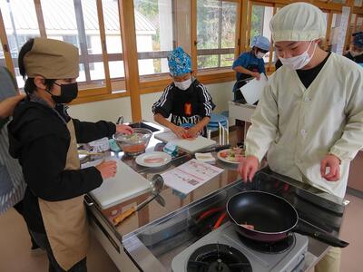 6年生の反応も良く、2時間があっという間に過ぎていきました。6時間目には、子どもたちも1食分の献立を作ることができました。