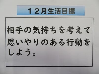 今日の全校集会では、12月の月目標「相手の気持ちを考えて思いやりのある行動をしよう」ということについて話をしました。