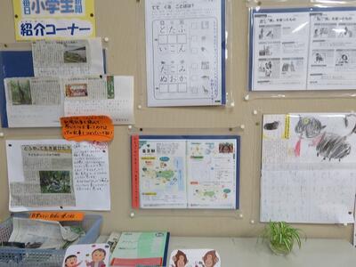 理科室前には、10月前半に行われた郡市科学展発明工夫展に出品した子どもたちの作品が掲示してあります。
