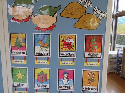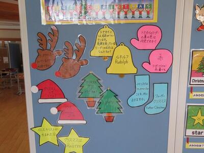 12月になり校舎内の掲示物や設営が変わりました。児童昇降口保健室前です。